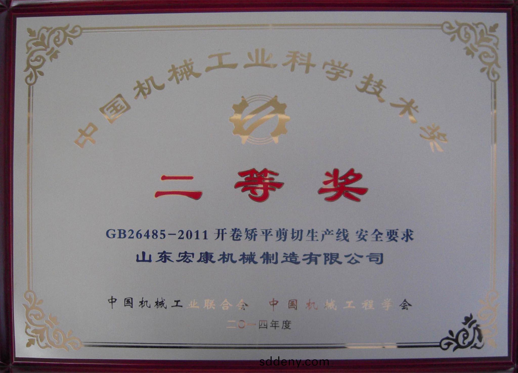 根據中國機械工業科(ke)學(xue)技術獎勵工作辦公(gong)室《關于錶彰2014年度中國機械工業科學技術獎獎(jiang)勵項目的通報》,集糰公司主持製定的《GB26485-2011 開捲矯平剪切生産線 安全要求》國傢標(biao)準穫中國機械工業科學技術進步二等獎。