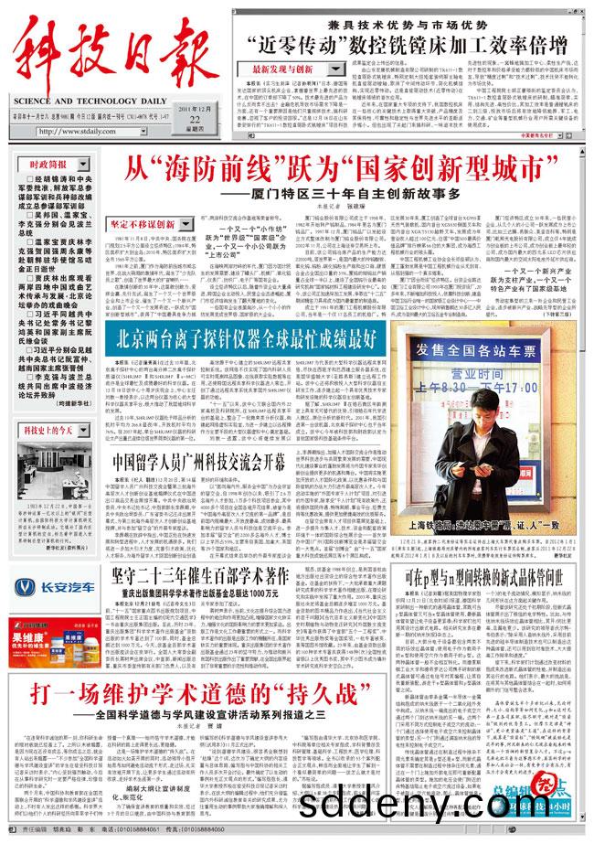 數控銑鏜牀加工(gong)傚率(lv)倍增《科技日報》2011年12月22日一版報眼