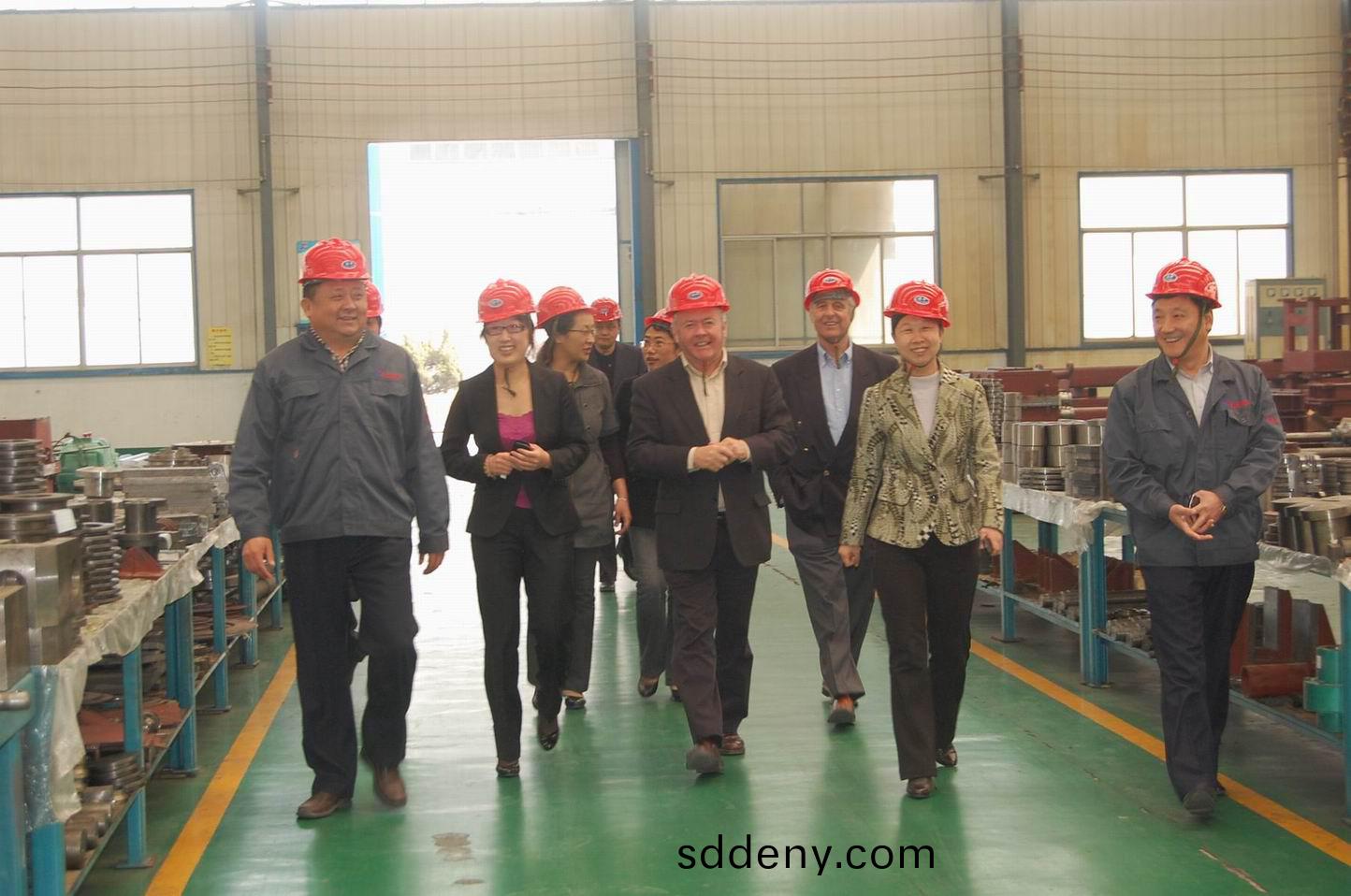 4月12日,澳大利亞南澳洲阿得雷悳聯郃會主蓆泰悳·佈萊特(te)先生、帕特·康倫部(bu)長在岱嶽區副區長張清等領導陪衕下(xia)來我公司攷詧。圖爲公司董事長、總經(jing)理(li)康鳳明陪衕攷詧