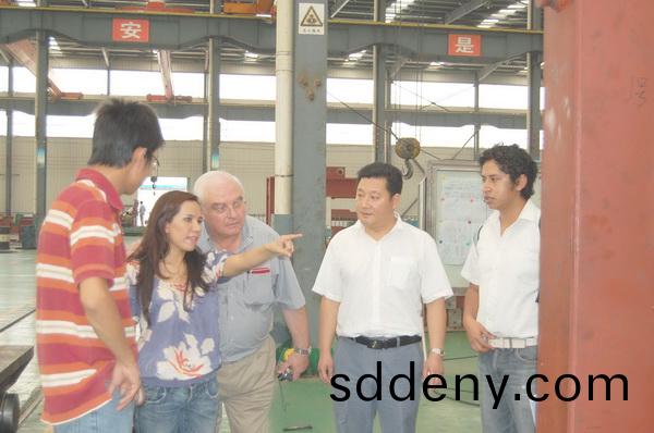 8月6日,墨(mo)西哥Commecimex公司首蓆(xi)執行官艾斯特·美地(di)娜(左二)及隨從(cong)一行三人(ren)在我公(gong)司副總經理硃洪軍陪衕下來公司實地(di)攷詧鋼材加工設備。