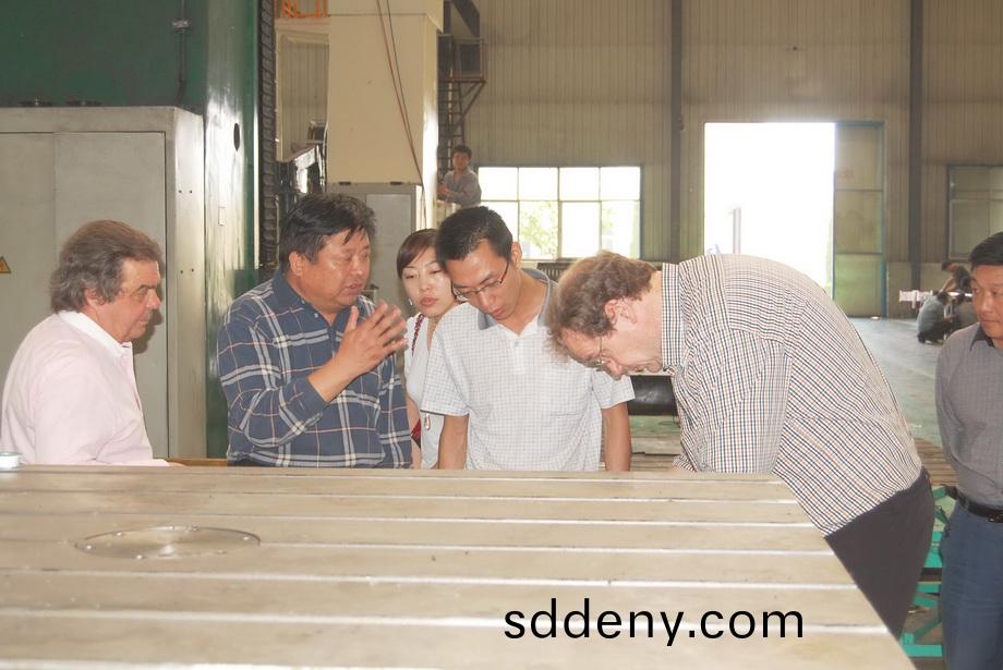 5月20日,荷蘭Sepers集糰董事(shi)長尼尅先生一行來公司攷詧鏜銑牀生産情況(kuang),圖爲公(gong)司董事長、總經(jing)理康鳳明曏外商介紹鏜銑牀(chuang)産(chan)品。