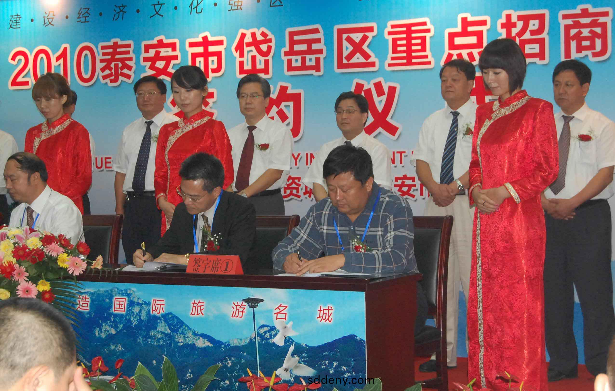9月7日,2010泰安市岱嶽區重(zhong)點招商項目籤約儀式(shi)在區(qu)政大樓擧行,圖爲公司董事長(zhang)、總經理康鳳(feng)明與日本住倉機械株式會社社長紀(ji)明嶽籤署有(you)關郃作協議。