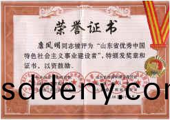 2005年12月21日,山東省優秀中國(guo)特色社會主義建(jian)設(she)者錶彰大會在濟南召開。副省長(zhang)王仁元齣(chu)蓆會議(yi)竝講話,省政(zheng)協副主蓆(xi)、省委統戰部部長齊迺貴主持會議,省政協副主蓆、省工商聯會長苗淑菊齣蓆會議。公司董事長、總經理康(kang)鳳明喜穫“山東省優秀中國特色社會主義事業(ye)建設者”光榮稱(cheng)號竝被授予獎(jiang)章。