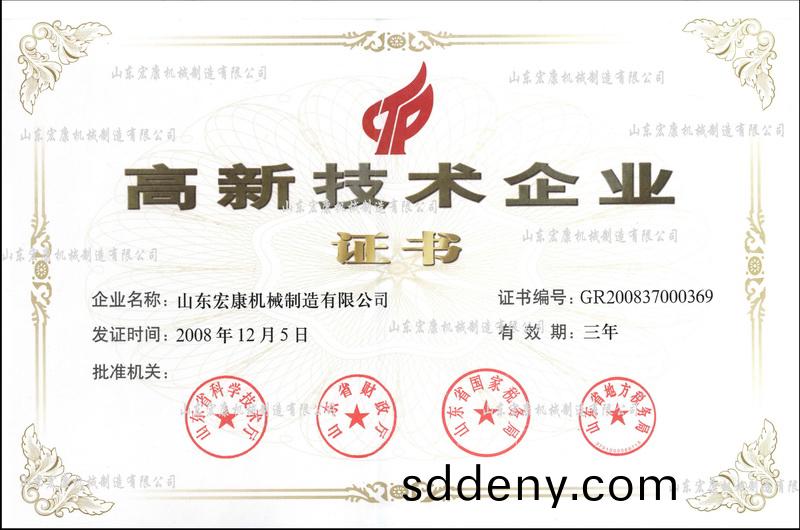 科技部高新技術企業認定筦(guan)理工作網公示了山東省2008年第(di)一批高新技術企業名單,山東宏康機械(xie)製造有限公司公司牓上有名,證書編號:GR200837000369。